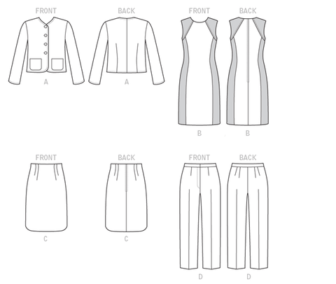 Pdb6332 Misses Collarless Jacket Dress Skirt And Pants Butterick Patterns